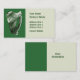 Eine glänzende keltische Harfe in grünem Chrom auf grünem Hintergrund, mit anpassbarem Text auf Vorder- und Rückseite. Eine ideale Visitenkarte, Visitenkarte oder Lesezeichen mit keltischem Thema, irisch, walisisch oder musikalisch.
