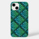 Ein iPhone 14 Case mit einem blau-grünen keltischen Knoten wiederholte Kachel Muster vor einem schwarzen Hintergrund. Nicht ein iPhone 14? Keine Sorge, es ist auch für andere Gerätetypen verfügbar =)