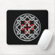 Ein Mousepad mit keltischem Knoten-Design mit einem roten Viereckkreuz in der Mitte.