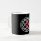 Eine klassische Tasse mit keltischem Knotendesign mit rotem Viereckkreuz in der Mitte.