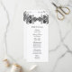 Mit dieser Karte können Sie auf der einen Seite Ihre Hochzeitsfeier und auf der anderen Ihr Hochzeitsfeierprogramm beschreiben. Passen Sie an, wenn Sie zusätzliche Textzeilen hinzufügen möchten. Mit Blätter und Weinreben in einem keltischen Knotmuster auf weißem Hintergrund.