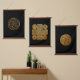 Ein Set, wenn drei komplexe keltische Knüpfarbeit entwirft, ein keltisches Knüpfarbeit Kreuz, und Triple Celtic Swirld Knüpfarbeit Mandalase mit ewigen Spiralen und dreipoligen Knoten, in Gold und Schwarz auf einem alten Pergament.