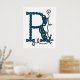 Eine blaue und silberne keltische Schlange, die in den Buchstaben R eingewickelt ist.