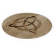 Ein Schneidebrett mit einer einfachen keltischen Triquetra, die mit einem Kreis, der ein trinitarisches Symbol vor einem Holzhintergrund bildet, verbunden ist.