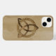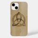 Un Coque iPhone 14 avec un simple triquetra celtique couleur entrelacé avec un cercle formant un symbole trinitaire contre un arrière - plan en bois, représentant l'unité spirituelle avec le divin.