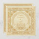 Diese keltische Hochzeitseinladung zeigt keltische Interlacing-Tiermotive an der Außengrenze und Ecken rund um den traditionellen Irish Claddagh Ring mit Händen, die ein Herz (keltische Spiraldesigns) mit einer Krone haben, die Freundschaft (Hände), Liebe (Herz) und Loyalität (Krone) symbolisiert. Der Ring wird mit traditioneller keltischer Knotenarbeit ergänzt. Die Hintergrundtextur stammt aus einem alten mittelalterlichen Manuskript. Der Rücken weist auch diese mittelalterliche Hintergrundstruktur auf und hat auch eine Grenze von keltischen Knoten in klassischem Gold.