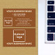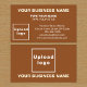 Visitenkarte, die Sie für Ihre Kunden oder Kunden anpassen können, um einfach Ihre Geschäftsadresse und Kontaktinformationen zu finden. Designfarben und Stil sind hellbraune und weiße Texte auf braunem Hintergrund und zentrierte Texte Ihres Firmennamens, Ihres Namens und Titels. Um diese Visitenkarte anzupassen, laden Sie Ihr Firmenlogo hoch, geben Sie Ihren Firmennamen, Ihren Namen, Ihren Titel, Ihre Adresse, Telefonnummer, E-Mail und Website oder Ihre Social-Media-Seite Ihres Unternehmens ein. Nach dem Hochladen von Logos und Schreibtexten, bitte Karo das Aussehen auf der Vorder- und Rückseite. Wenn Ihnen das Aussehen gefällt, können Sie jetzt Ihre Bestellung aufgeben. Wenn Sie das Logo und die Texte ändern und verschieben müssen, um auf diese Visitenkarte zu passen, wechseln Sie bitte im Design-Tool. Sie können auch andere Änderungen im Design-Tool nach dem Aussehen dieser Visitenkarte vornehmen, die Sie bevorzugen, z. B. die Änderung der Hintergrundfarbe, der Schriftart-Farbe und der Schriftart-Stil.