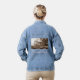 Hübsche Denim-Jacke zum Feiern des Central Park. Das Vintag inspirierte Sepia-Bild der historischen Delacorte-Uhr, die seit Generationen den Eingang des Zentralen Parks bewundert.