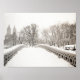 Dieses Schwarz-Weiß-Foto ist eine wunderschöne Winterlandschaft im Central Park, New York City. Die Aussicht auf die Bow Bridge, eine der romantischsten Gusseisenbrücken des Central Park, in Richtung der prächtigen Manhattan-Gebäude hinter den Winterbäumen. Schneedecke Bow Bridge und die Erholung des Central Park geben diesem Bild ein magisches Gefühl: wie es ist Teil eines wunderbaren Wintertraumes. Dieses Plakat aus dem Central Park ist vollständig anpassbar. Personalisieren Sie es mit Text, Namen, Anlass oder verlass es, wie es ist!