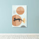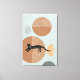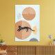 Cercles et arcs Abstraits avec un chat noir moody. Couleurs crème, bleu poussiéreux, terre cuite et noir.