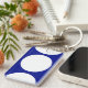 Ce motif géométrique audacieux présente un cercle blanc au centre et deux demi-cercles blancs aux bords d'un arrière - plan bleu vif. Si vous souhaitez ajouter un monogramme ou une image à la conception, cliquez sur le bouton "Customiser !". numériquement créé une image. Copyright © 2011 Claire E. Skinner. Tous droits réservés.