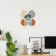 Une impression murale abstraite moderne avec des cercles géométriques qui se chevauchent dans des tons muets de beige, de terre cuite et de bleu. Avec sa symétrie équilibrée et son style minimal, cette oeuvre ajoute une touche contemporaine aux salons, chambres ou espaces de bureau.