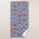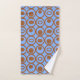 Cet ensemble de serviettes a un design géométrique de cercles en rangs avec des cercles ou ovales à l'intérieur en marron sur un champ de bleu.