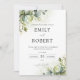 Cérémonie Mariage de verdure Invitation. Cette invitation à la douche de mariage élégante et élégante présente de magnifiques aquarelles peintes à la main. Trouvez les articles correspondants dans la Collection Florale Eucalyptus de verdure.