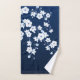 Branche classique en fleurs de cerisier blanc sur un arrière - plan bleu marine. Design botanique mignon aux couleurs maritimes pour lui et elle.