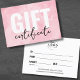Pink Watercolor Logo Business Cadeau Carte de visite certificat cadeau. Ajoutez votre logo pour en faire votre propre logo. Un certificat cadeau amusant et simple pour les marques d'entreprise, les petites entreprises, ou les particuliers comme les maquilleurs, les esthéticiens, les coiffeurs, et bien plus encore! En ce moment, c'est un colorant rose, noir et blanc, mais vous pouvez en fait passer n'importe quelle couleur à ce que vous voulez utiliser! Le motif blanc de l'aquarelle reste surchargé par rapport à la couleur que vous choisissez pour l'arrière - plan. Un mélange de typographie moderne et de script pour un look professionnel mais chic.