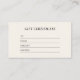 Ce carte de visite de certificat-cadeau beige présente un agencement simple avec des icônes de médias sociaux (Tiktok, Instagram, & Facebook). Parfait pour toutes les entreprises créatives et les professionnels qui aiment la simplicité. Des papeteries et des produits de bureau correspondants sont disponibles dans ma boutique BaraBomStudio.