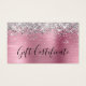 Conception moderne de glam girly pour vos petits certificats-cadeaux de taille carte de visite. Tous les textes et lignes sont personnalisables si vous avez besoin d'informations différentes pendant que vous créez vos propres petites cartes-cadeaux. Si vous avez besoin de plus de deux lignes pour vos coordonnées, il y a beaucoup de place pour déplacer les différents éléments autour. La parties scintillant en argent brillant contre une fausse feuille métallique brossée rose clair art numérique images graphiques dans cette impression design comme une photo.