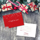 certificat cadeau de vacances d'affaires avec élégante chute de flocons de neige sur un arrière - plan rouge avec typographie chic de script blanc. Ajoutez vos détails à l'envers.