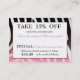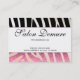 Certificats à la mode de vente de salon de zèbre et de guépard. Certificat-primes sophistiqués modernes de salon de zèbre et de guépard de concepteur. Tenez-vous de la foule et faites une déclaration avec ces cartes promotionnelles d'affaires. Customisez avec votre information personnelle ou d'affaires et montrez votre côté chic et moderne avec ces certificat-primes modernes et sophisticted. Un grand outil pour augmenter vos affaires pour votre salon ou spa ! À la mode et frais, pourtant d'une manière élégante sophistiqué avec les rayures noires et blanches de zèbre qui tiennent une copie rose subtile de guépard. Votre raison sociale peut être mise sur la bannière blanche au milieu de ces cartes et vous pouvez complètement customiser le dos avec vos détails de vente ! Créé et Copyright Julie 2010 Farrell un habillement plus génial, plus mignon et frais et des cadeaux disponibles aux achats heureux de www.zazzle.com/jfarrell12. farrell | du © 2010 % pipe% Julie tous droits réservés