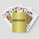 Zertifizierte Premium Playing Cards - Gold Edition Erhöhen Sie Ihre Spielabend-Touch durch die #Certified Premium Playing Cards - Gold Edition. Diese Karten mit einem kühnen und auffälligen Golddesign mit dem "#CERTIFIED" Logo sind perfekt für Spieler, die Stil und Qualität in jeder Hand verlangen.