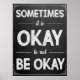 PARFOIS, IL N'EST PAS POSSIBLE DE NE PAS ÊTRE OK Une affiche géniale à accrocher dans un bureau d'orientation scolaire, un pédagogue ou un psychologue pour rappeler aux enfants, aux ados ou aux adultes qu'ils sont en sécurité et qu'il est parfois normal de ne pas se sentir bien et de demander de l'aide. Une affiche tendance et élégante pour décorer le conseiller ou le bureau du travailleur social ! Comprend une superbe typographie sur un faux arrière - plan de tableau de bord.