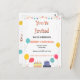 C'est l'heure de la fête ! Créez de l'excitation pour votre fête d'anniversaire avec des invitations lumineuses et colorées à la fête sur le thème des ballons ! Cette invitation colorée comporte les mots "It’s Party Time" et vous êtes invité avec des ballons festifs, des étoiles et des points dans un confetti.