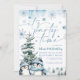 Bleu hiver merveilleuse invitation anniversaire. Avec pingouin, pins et flocons de neige aquarelle.