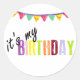 c'est mon autocollant d'anniversaire avec des mots colorés et une bannière. Alors dites à tout le monde que c'est votre anniversaire.