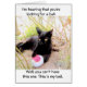 Rien n'est plus mignon qu'un animal de compagnie qui fait savoir à quelqu'un quel jouet ou balle est leur propriété. Cette carte de voeux fera sourire tout le monde sur-le-champ. La carte est pour toute occasion. C'est génial de donner ou d'envoyer à quiconque travaille avec des animaux ou des bénévoles dans des abris pour animaux. Il peut être ajouté à des paniers-cadeaux, des sacs à main ou des cadeaux emballés. Notre modèle de chat est Kitty. C'est une errance qui s'est demandée dans mon jardin. Elle était affamée et froide. Je l'ai secourue, je l'ai nommée et maintenant elle fait partie de ma famille.