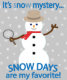 Jour de la neige ! ! Il y a des souvenirs spéciaux d'écouter la radio lors d'une journée de tempête d'hiver dans l'espoir d'entendre notre système scolaire parmi la liste des fermetures. Quand il a été finalement annoncé, une joyeuse joie a sonné à travers la maison alors que nous nous sommes tous précipités au lit pour profiter d'un séjour inattendu. Mes propres enfants ont vécu des expériences similaires. Être fan de films mystérieux a été l'inspiration pour ajouter un certain caractère à ce bonhomme de neige avec un jeu de mots.