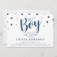 Invitations bleues personnalisées de baby shower avec des confettis de point de polka - c'est un garçon !