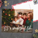 C'est un merveilleux Vacances de Vie Photo Carte Postale Script en lettres blanches. retour a une jolie bordure florale. Style de lettre. Gros design photo. Un design heureux et festif. C'est une vie merveilleuse. fleurs. rouge et blanc. cadre fleuri.