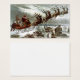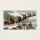 Illustration vintage du Père Noël qui est d'apparence naturelle et plein de détails. Père Noël monte son traîneau plein de rennes et un sac de jouets, sur une scène enneigée nuageuse au clair de lune en dessous. Une charmante et grande maison victorienne est sa prochaine étape pour livrer des jouets et des bonbons. St. Nick se réchauffe avec une très grande couverture en fourrure. Il sort de sa traîne de nombreux jouets, dont un cheval à bascule, des poupées pour bébé, un tambour de jouets et une maison de poupées.