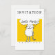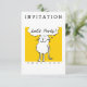 Ce chat sourit et vous invite à une fête. Ajoutez votre nom et votre adresse de fête. Chatte de dessin animé sur le thème jaune et noir.