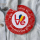 Die tschadische LIEBE FLAG. Wie die anderen Tante Shoe's The LIEBE Series wird das Wort LIEBE in roten Buchstaben in einem weißen Kreis im Fraktal-Stil dargestellt. Der Kreis sitzt auf einem roten Hintergrund im Stil eines Fraktals. Ideal für den Valentinstag oder zu jeder besonderen Zeit. Reisende im Tschad in Afrika mögen das vielleicht auch.