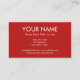 Un carte de visite bikini à cordes amusantes en rouge, or et blanc sur un arrière - plan bleu.