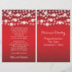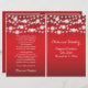 Chaîne de lumières et de flocons de neige blancs cérémonie de mariage d'hiver rouge et programme plié de fête avec un cordon de lumières brillant de scintillement blanc avec des flocons de neige blancs sur le dessus sur l'arrière - plan dégradé rouge. Ce design mariage moderne et tendance fait partie d'un ensemble ou d'une collection de mariages, est entièrement personnalisable et est parfait pour un mariage de Noël d'hiver. Il faut le plier au centre. Choisissez seulement ce type de papier-valeur comme il se plie bien. Certains éléments sont offerts par vectorportal.com.