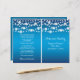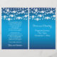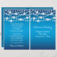 Chaîne de lumières et flocons blancs cérémonie de mariage d'hiver bleu et programme plié de fête avec un cordon lumineux scintillant blanc avec des flocons de neige blancs sur le dessus sur l'arrière - plan dégradé bleu. Ce design mariage moderne et tendance fait partie d'un ensemble ou d'une collection de mariages, est entièrement personnalisable et est parfait pour un mariage de Noël d'hiver. Il faut le plier au centre. Choisissez seulement ce type de papier-valeur comme il se plie bien. Certains éléments sont offerts par vectorportal.com.