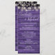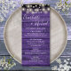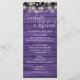 Carte de menu Rustique mariage avec de jolies lampes à cordes et des noms de style signature, cette carte de menu élégant peut être personnalisée avec vos informations en lettrage blanc chic sur un arrière - plan de panneaux de bois violet. Conçu par Thisisnotme©