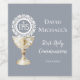 Chalice Host First Communion blue background Weinetikett