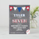 Modern Chalkboard Baseball Geburtstagseinladung für Kinder // Niedliche Baseball Geburtstagskarte. Das Design hat Baseballs und bunte Fahnen in Rot, Weiß und Blau auf einem Chalkboard-Hintergrund. Personalisieren Sie diesen Geburtstag laden Sie mit dem Namen, Alter und personalisieren Sie alle Daten auf der Einladung. Toll als Geburtstagsfeier für einen Jungen, der Baseball und Sport Liebe.
