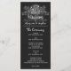 Chalkboard programmes de mariage moderne avec des fleurs dessinées à la main, des feuilles, des branches et des coeurs d'amour. Joli, décontracté et moderne