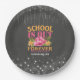 Feiern Sie den Ruhestand des Lehrers mit diesem Tafelpapier mit den Worten "Schule ist für immer draußen. Rosa und gelbe Akzente mit einer wunderschönen rosa Blume, für eine von einem freundlichen Party versorgt die stolze Lehrerin, die in Rente geht.
