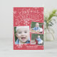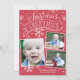 Diese 3-Foto-Urlaubskarte bietet handgeschriebene und kalligraphische Kunstwerke auf festlich rotem Hintergrund mit Schneeflocken.