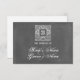 Un rsvp de mariage avec un design inspiré du tableau noir. Personnalisez avec les noms de la mariée et du marié à l'avant et avec la date à l'arrière.
