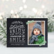 Cartes photos de Noël imprimées sur mesure et abordables avec des modèles simples pour la personnalisation. Ce design amusant présente une jolie typographie de style lettré à la main sur un faux arrière - plan de tableau noir avec ruban de lavage rayé vert autour de votre photo. Le texte dit : "J'espère que les fêtes vous amèneront beaucoup de raisons de sourire". Personnalisez-le avec vos photos, nom de famille, année ou autre texte personnalisé. A l'intérieur a de l'espace pour des photos supplémentaires et votre salutation personnelle de vacances. Utilisez les outils de conception pour modifier le texte, ajouter plus de photos et créer une carte de voeux photo unique d'un type de vacances.