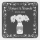 L'autocollant mariage populaire de style tableau noir est par défilement tourbillon avec bordure de coeur et une illustration originale d'une jarre de maçon branchée tenant des fleurs de chrysanthème blanc et un coeur personnalisé avec les initiales de la mariée et du marié donné un effet craie. La typographie Whimsical donne à l'autocollant un aspect élégant et décontracté. Coordonner les éléments également disponibles. Quelques graphiques de clipartSingles sur le site etsy.com