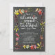Feuilles d'automne colorées et amusantes avec une typographie à la main "il ya toujours quelque chose à remercier" mis sur un arrière - plan populaire de tableau noir. Retournez notre invitation pour voir un retour de coordination pour une touche spéciale supplémentaire.
