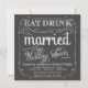 Elegante rustikale Chalkboard Coupels Polterabend Einladungen - essen, trinken & verheiratet sein. Wirble, lockige Rollen und extravagante rustikale Rahmen auf der Schiefergrauen Tafel. Fügen Sie in dieser leicht zu bedienenden Vorlage den Namen und die Informationen zum Party der Braut und Dusche hinzu. Vintage Kreidekalligraphie und Kalkschrift-Typografie - verändern Sie die Schriftart-Stile, um Ihr formales oder halbformales Retro-Hochzeitstil widerzuspiegeln. Der Square Chalk Board Einladungs Stil ist ideal für moderne Hochzeiten mit einer Touch von raffiniertem Charme für Braut und Bräutigam. NACHRICHT: Dieses Produktdesign ist nur für Quadratkarten Set-Up, was extra Porto erfordert.